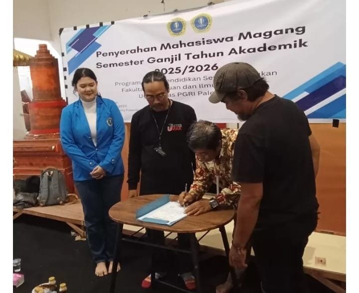 GoSumsel – Suasana penuh semangat dan keakraban mewarnai kegiatan serah terima mahasiswa magang Fakultas Keguruan dan Ilmu Pendidikan (FKIP) Program Studi Seni Pertunjukan Universitas PGRI Palembang kepada Dewan Kesenian Palembang (DKP), Senin (6/10/2025).