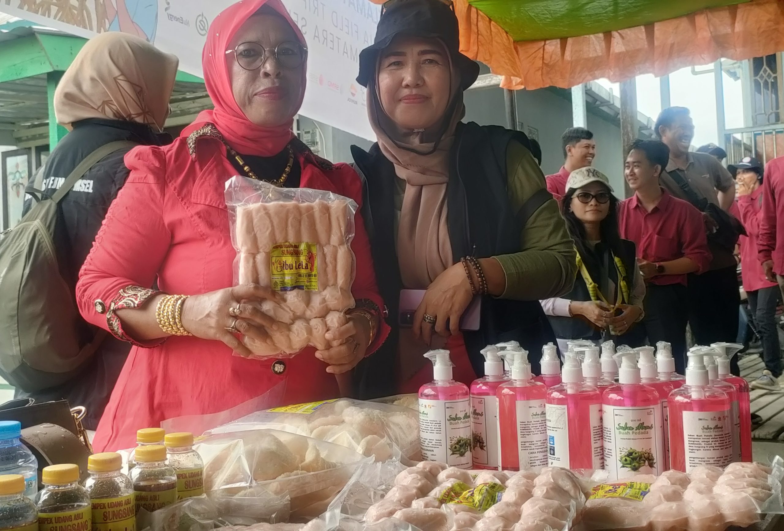 “Dari udang bisa kami buat pempek. Dan dari limbah buah pedada mangrove kita olah jadi sabun cuci tangan,”jelasnya.