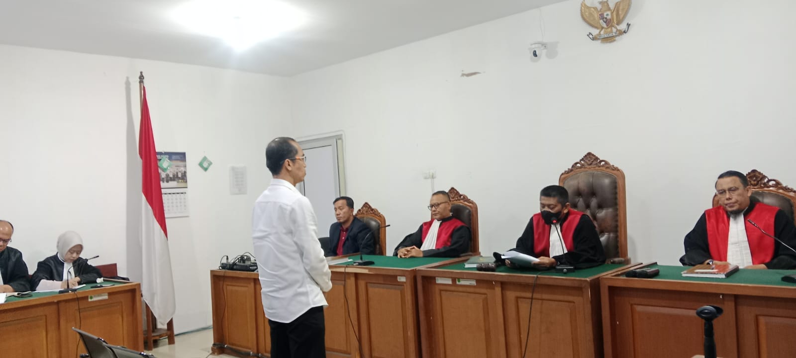 Terdakwa Rainmar mendengarkan vonis majelis hakim (foto : yns)
