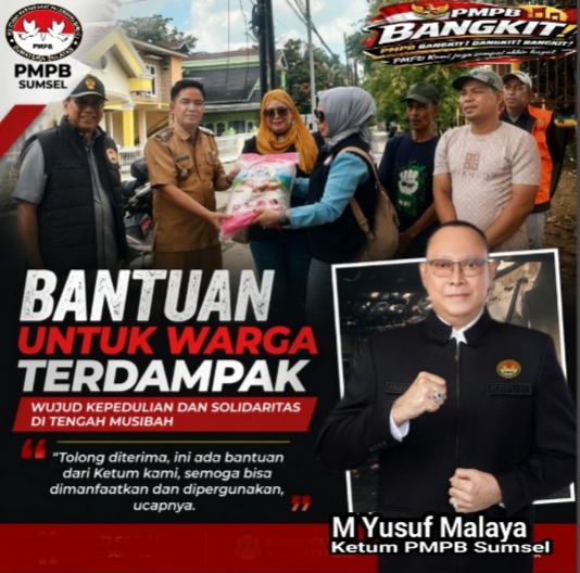 Dikesempatan itu juga rombongan PMPB Sumsel menyerahkan bantuan dari Ketum PMPB, untuk meringankan beban korban.